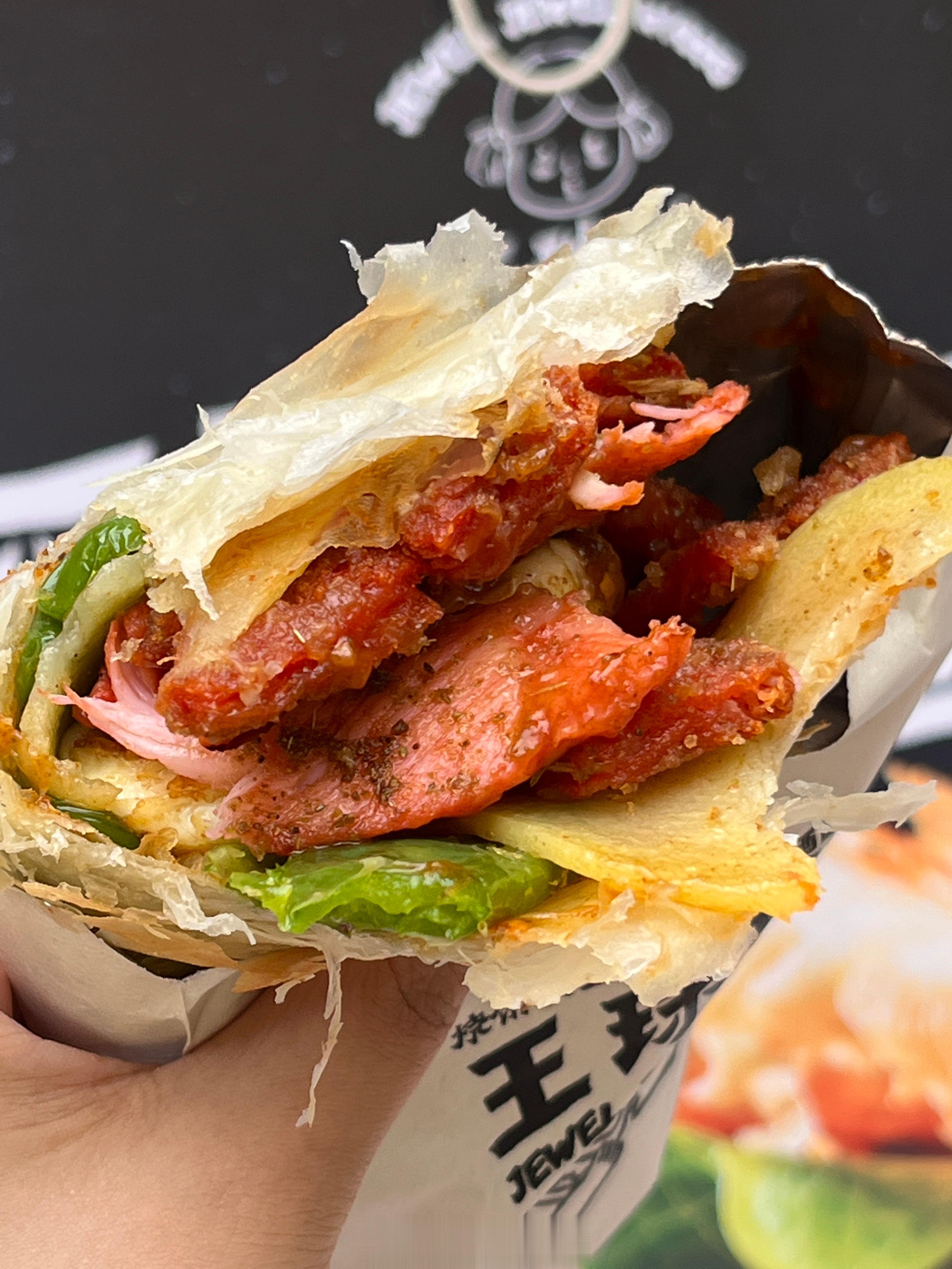 红子开了新店子,卖烧饼夹里脊和冰酒酿,味道不擦,在东郊记忆北街,欢迎红家军们到店品尝[舔屏]