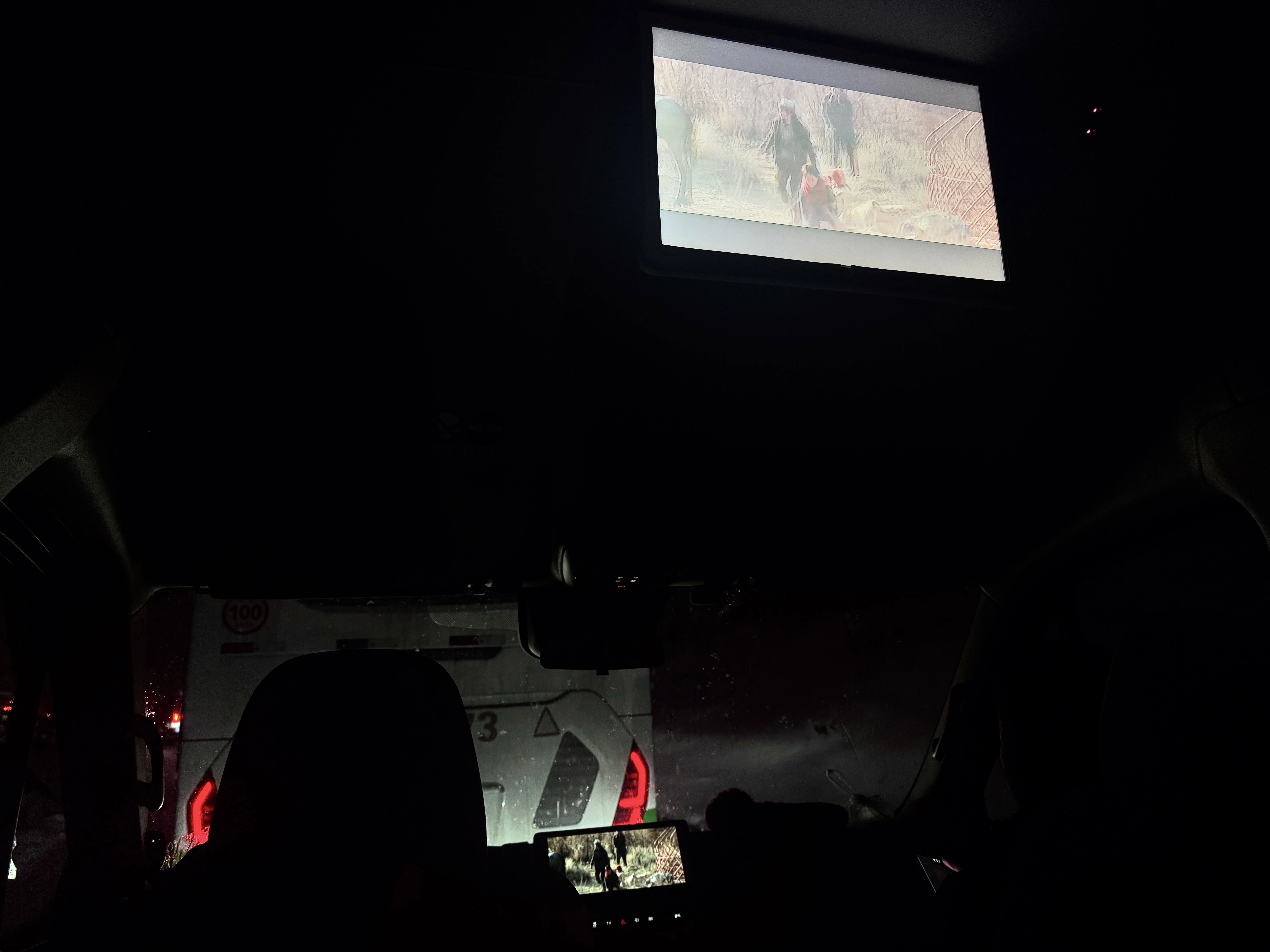 堵车期间,我们在车上看《我的阿勒泰》。(图/受访者供图)