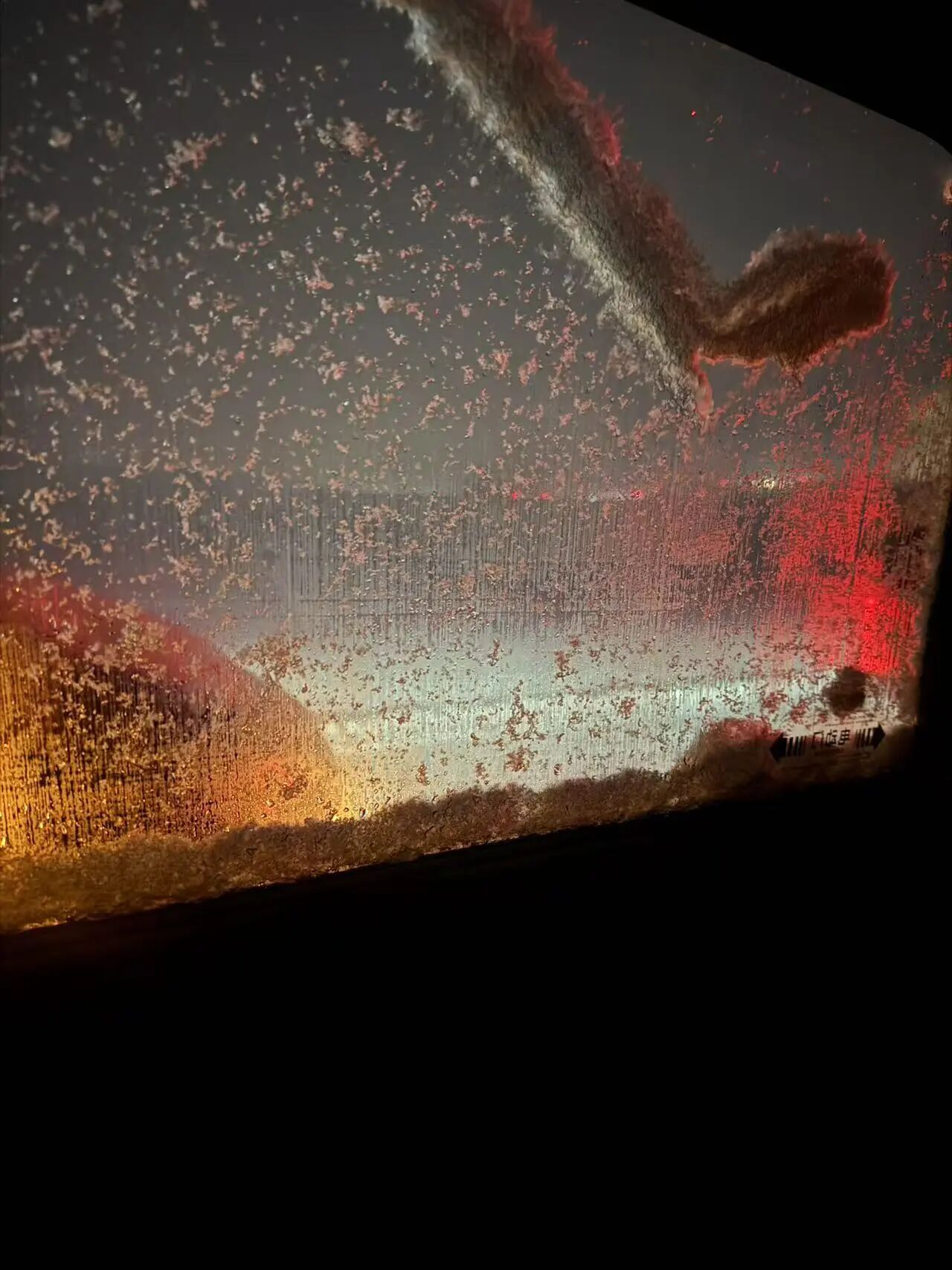 5日夜里,车窗玻璃已经结冰,我们决定在车里凑合一夜。(图/受访者供图)