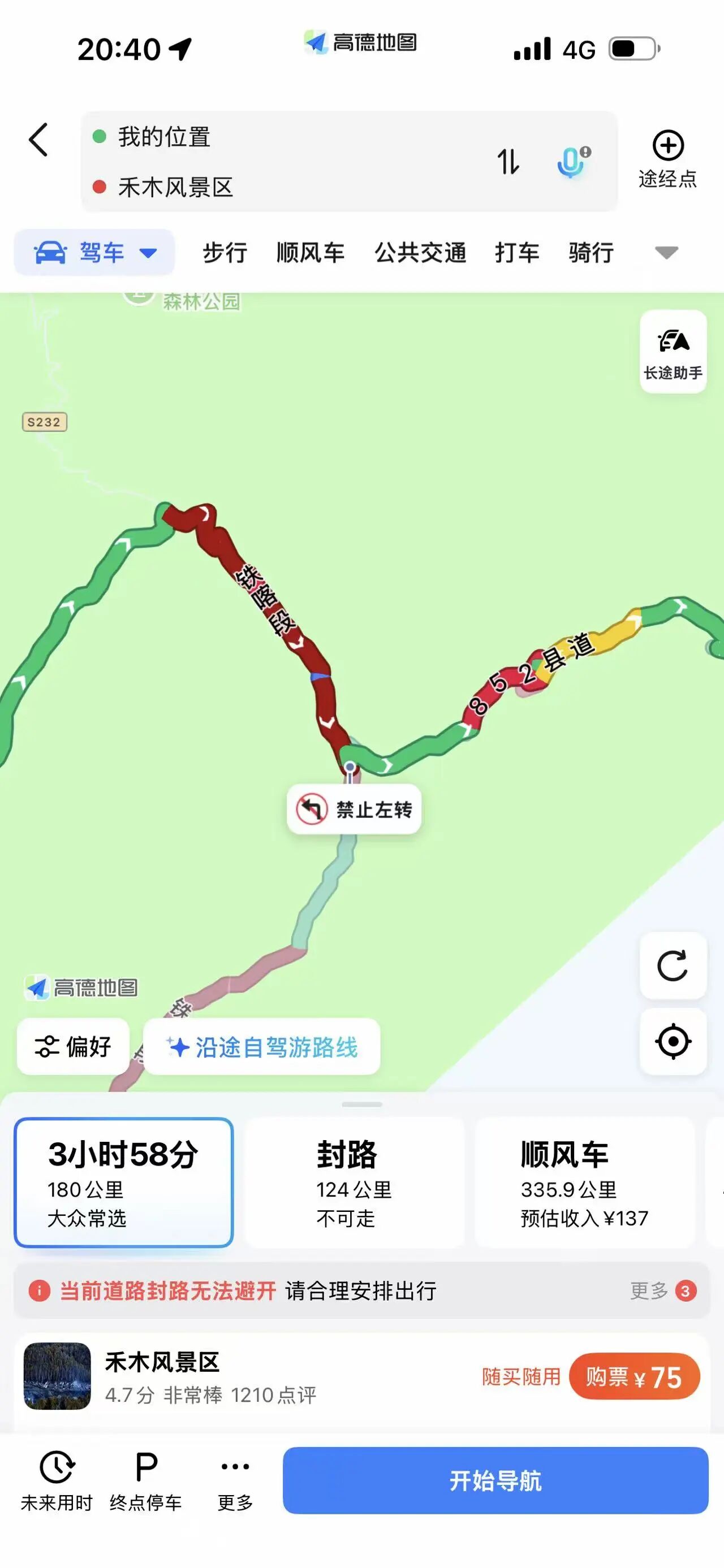 10月4日我们抵达喀纳斯时,山上已有积雪,但道路还算通畅。我们当晚入住了景区内的家庭房。然而,5日一早,景区的公共交通就全部停摆了,我们只能步行游览部分景点。下午2点,我们乘坐恢复通行的第一班区间车下山,到达山脚下的贾登峪游客中心,在下午3点多开上了车,准备自行离开。