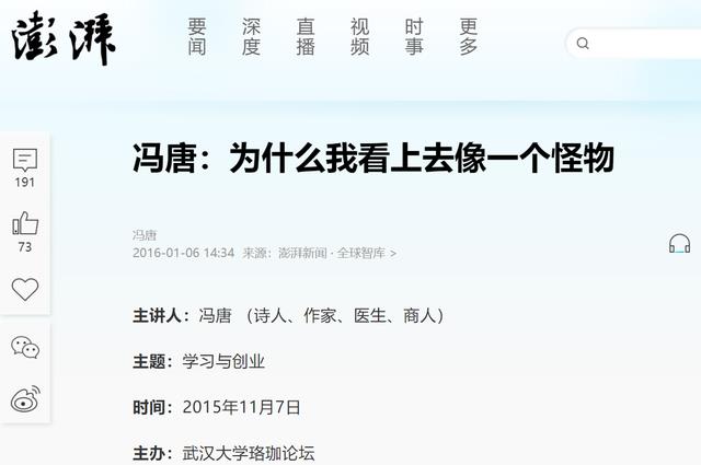 【1】澎湃新闻,2016-01-06,“冯唐:为什么我看上去像一个怪物”.