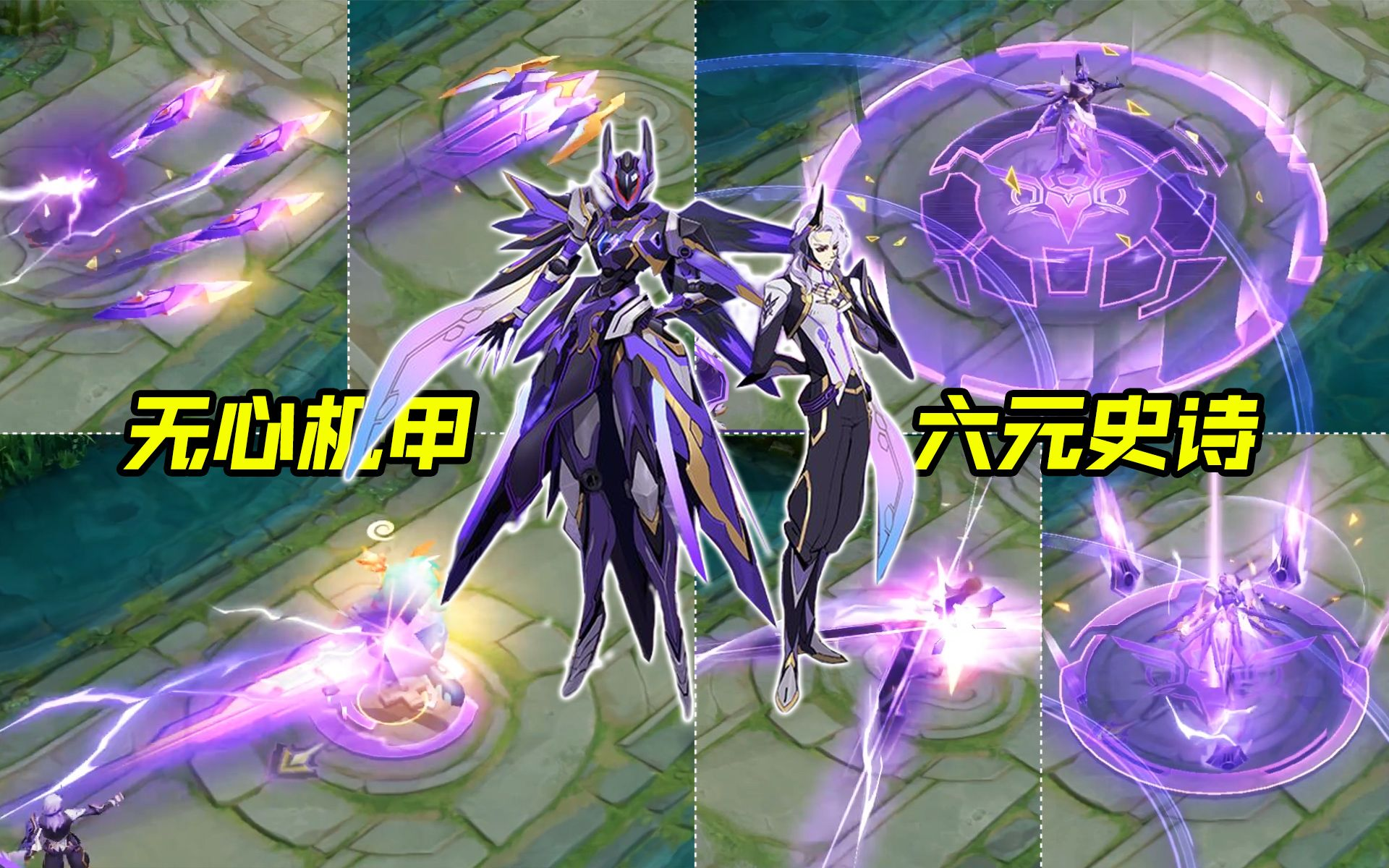 2022 年上线的元歌「无心」,用 6 元价格诠释什么叫「机甲美学」!整体以紫黑色为主色调,傀儡化身为悬浮飞行器,关节处闪烁蓝色能量光效,技能释放时伴随电子电流声与齿轮转动特效:一技能召唤傀儡时地面浮现全息投影,二技能扔出带轨迹的能量镖,三技能释放紫色激光束,科技感直接拉满。