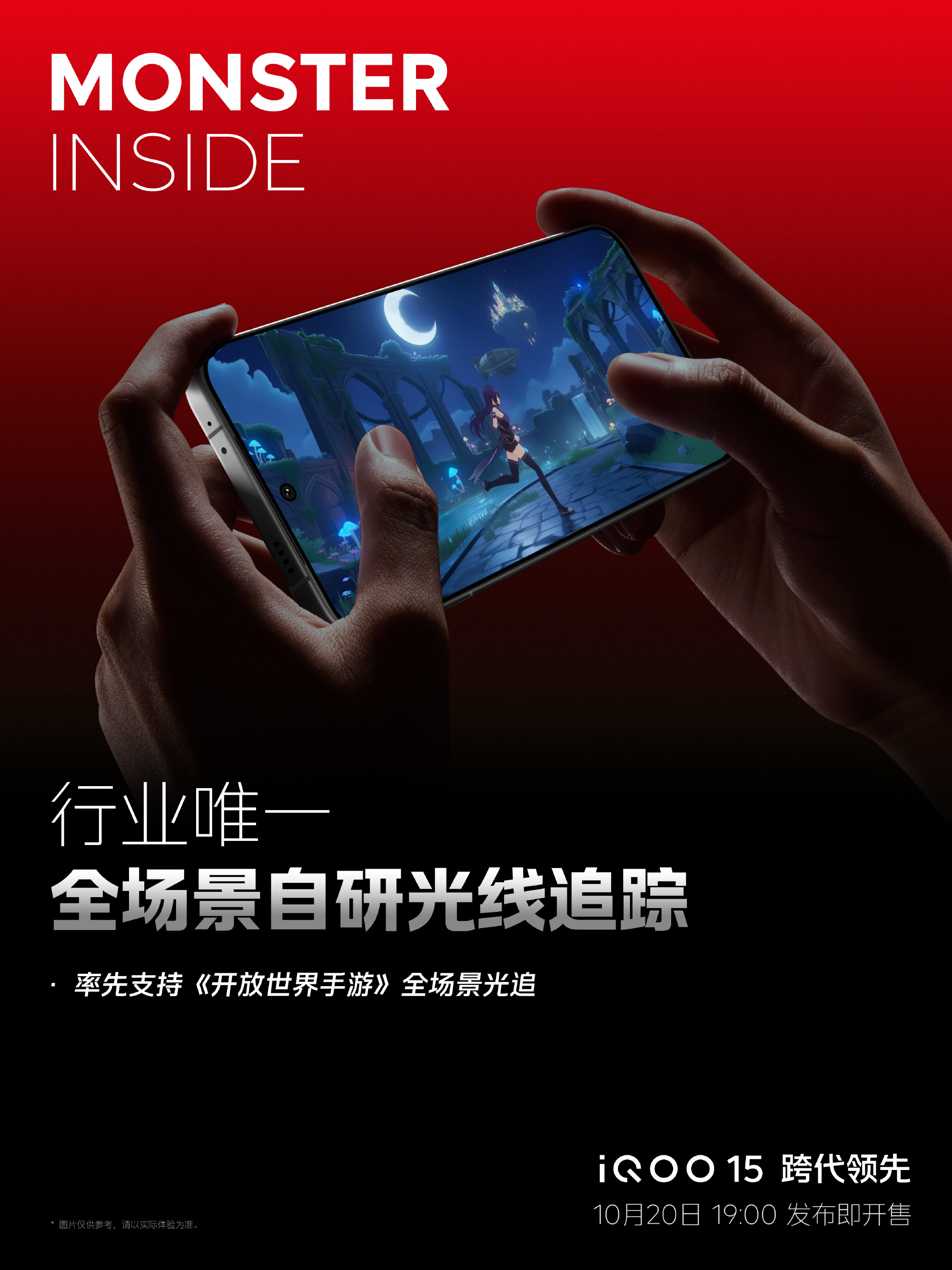 与行业内一些厂商展示的、仅能在特定小场景或针对特定物体开启的光追技术不同,iQOO 15的光追技术是“全自研、全场景”的。这意味着它能够在像《某开放世界手游》这样地图宏大、场景复杂的开放世界游戏中,为整个游戏世界赋予真实、生动、自然的光影变化。无论是阳光穿过树叶缝隙在地面上投下的斑驳光影,还是角色盔甲上实时反射出的周围环境,都能够被精准地实时渲染出来。