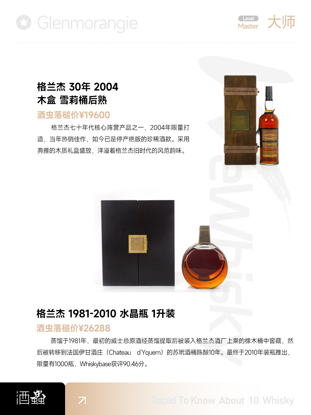 格兰杰七十年代的核心阵营产品之一,2004年限量打造,如今已是停产绝版的珍稀酒款。采用典雅的木质礼盒盛放,洋溢着格兰杰旧时代的风范韵味。