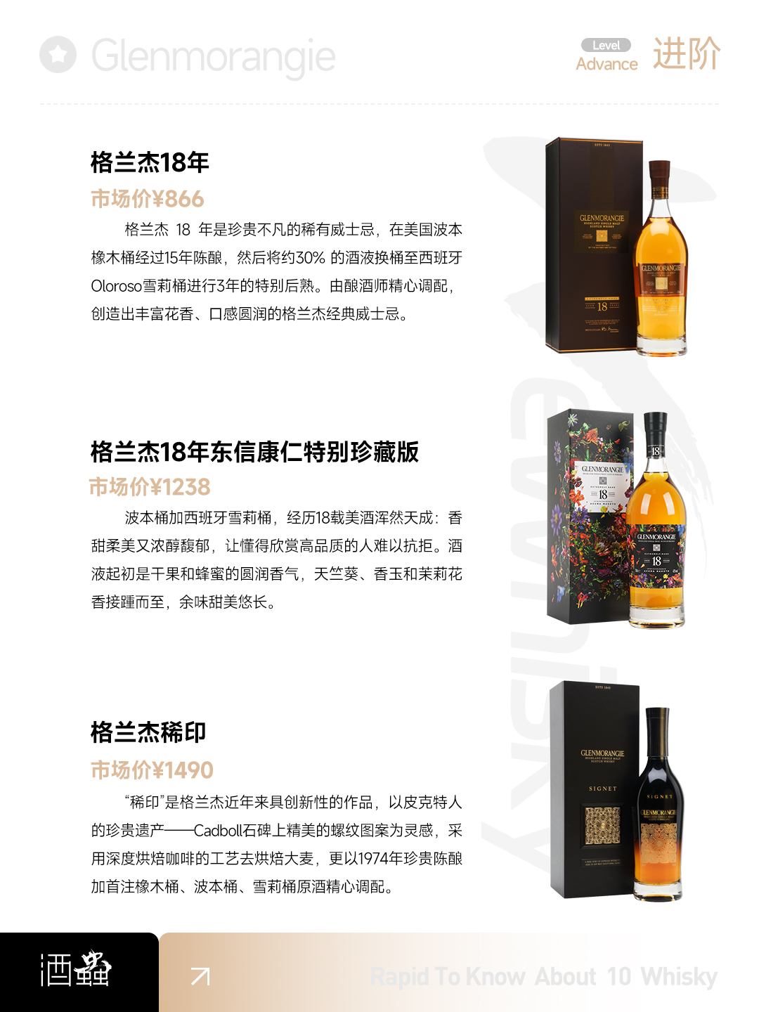 格兰杰 18 年是珍贵不凡的稀有威士忌,在美国波本橡木桶经过15年陈酿,然后将约30% 的酒液换桶至西班牙 OLOROSO 雪莉桶进行3年的特别后熟。由酿酒师精心调配,创造出丰富花香、口感圆润的格兰杰经典威士忌。