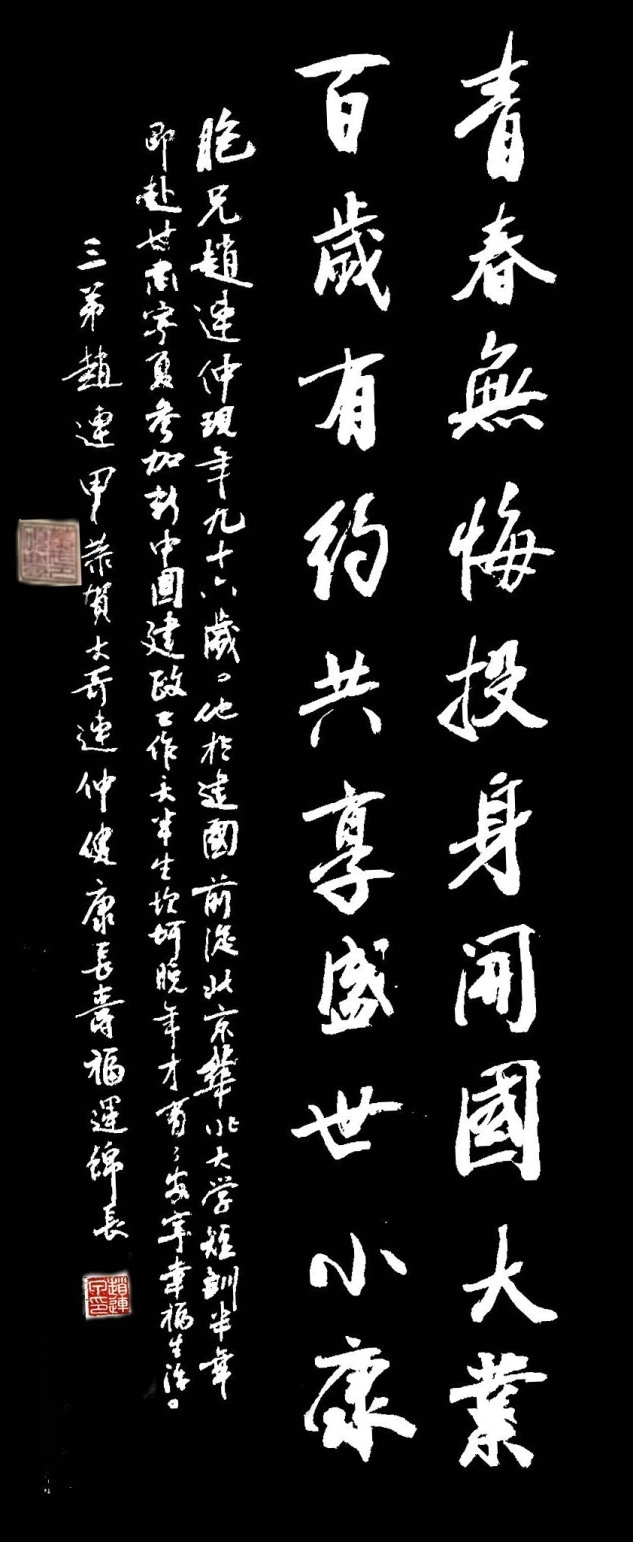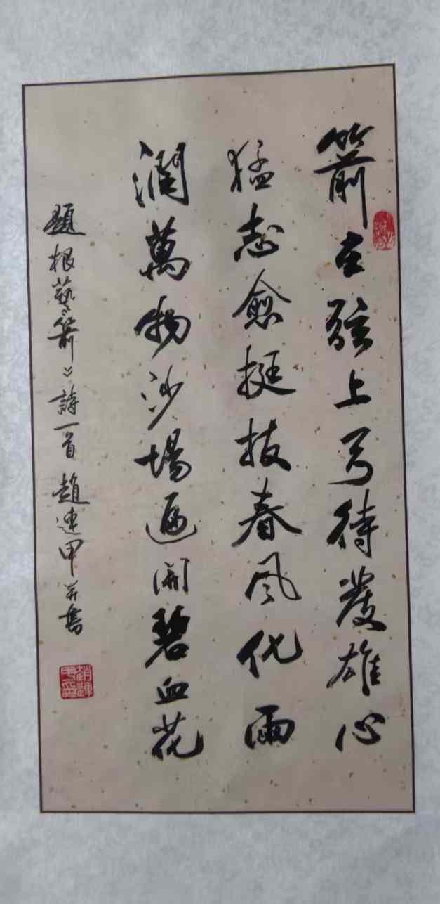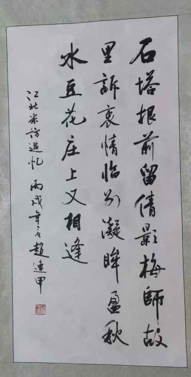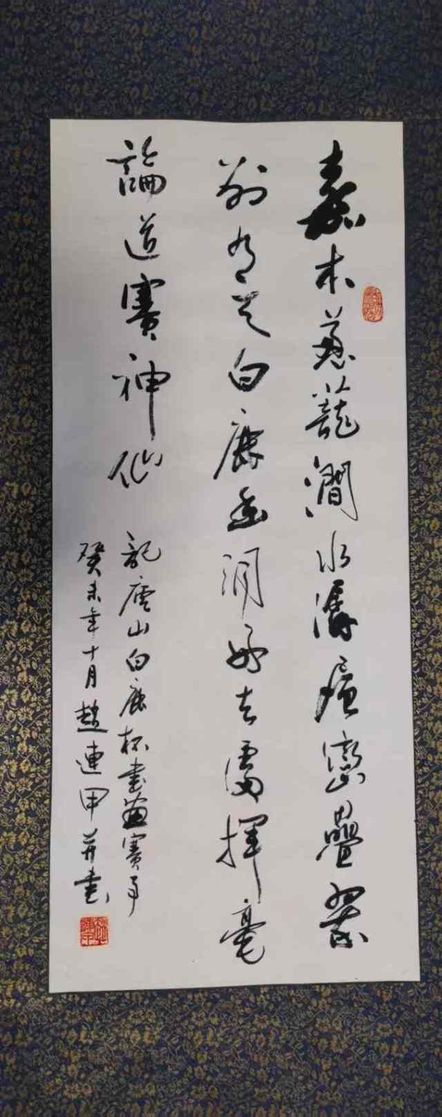 赵连甲,男,汉族。1947 年 8 月生,字砚农、燕农,别号墨痕斋主,北京昌平阳坊镇四家庄人。赵连甲系中共党员。中国民主建国会会员。著名书法家、诗人、文艺评论家、书画鉴赏家、收藏家。当代著名文化大师、书法大家、教育家欧阳中石先生入室大弟子。1982 年毕业于首都师范大学中文系,现任中国人民解放军三军仪仗队文化顾问。国防大学文化艺术中心顾问。中国建设书法家协会会员。北京中国书法研究社社员, 北京中山书画院成员,中国国家博物馆画廊艺术委员。曾任中国质量报社工商部主任,主任编辑。2007 年退休以来, 又相继受聘为中国国际商会,中国社会工作联合会,中国国宝工程基金等若干家机构文化艺术顾问。2021 年以来,受聘担任北京中宣盛世国际书画院理事。入选《大国风范-聚焦中国当代人民功勋艺术家》入编人物。2021 年 12 月以来,又陆续被授予中国人民艺术家,中国艺坛风云人物,国宝级艺术大师等荣誉称号由 2022 年初,赵连甲开始出任亚洲书画家协会主席。北京大学艺术学院客座教授。清华大学美术学院客座教授。中央美术学院客座教授,走向世界的中国艺术家。德艺双馨艺术家。2023 年 5 月,赵连甲受聘为北京人民大会堂首席艺术顾问。获中国非遗传承大师荣誉称号。