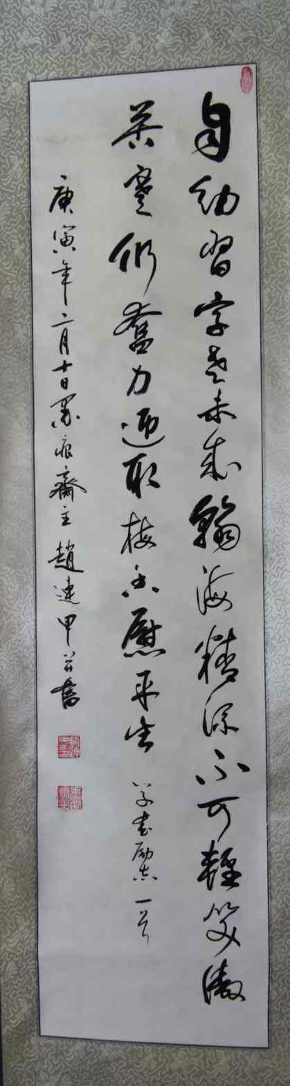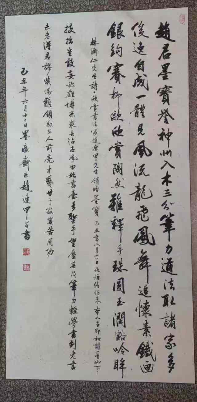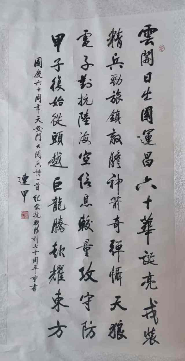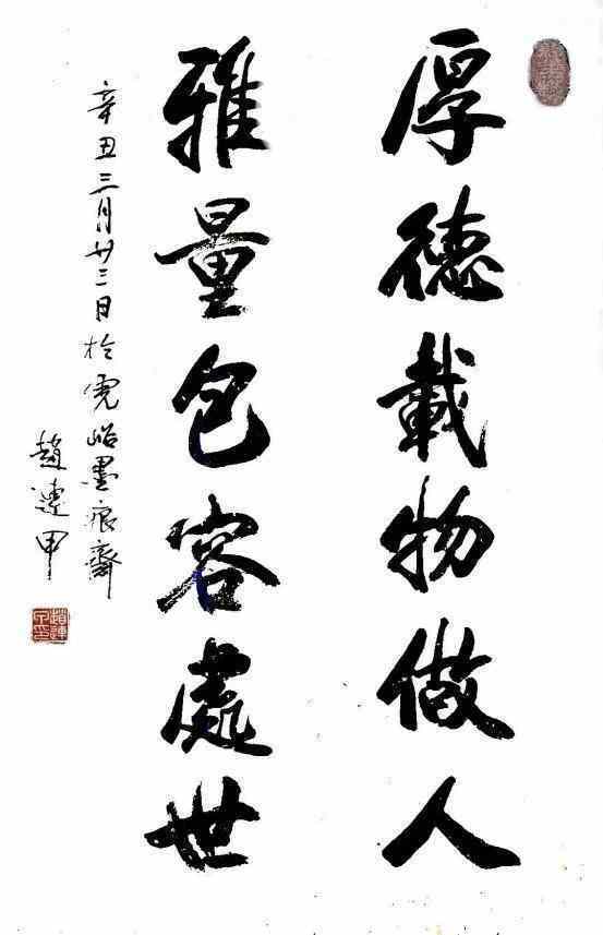 赵连甲,男,汉族。1947 年 8 月生,字砚农、燕农,别号墨痕斋主,北京昌平阳坊镇四家庄人。赵连甲系中共党员。中国民主建国会会员。著名书法家、诗人、文艺评论家、书画鉴赏家、收藏家。当代著名文化大师、书法大家、教育家欧阳中石先生入室大弟子。1982 年毕业于首都师范大学中文系,现任中国人民解放军三军仪仗队文化顾问。国防大学文化艺术中心顾问。中国建设书法家协会会员。北京中国书法研究社社员, 北京中山书画院成员,中国国家博物馆画廊艺术委员。曾任中国质量报社工商部主任,主任编辑。2007 年退休以来, 又相继受聘为中国国际商会,中国社会工作联合会,中国国宝工程基金等若干家机构文化艺术顾问。2021 年以来,受聘担任北京中宣盛世国际书画院理事。入选《大国风范-聚焦中国当代人民功勋艺术家》入编人物。2021 年 12 月以来,又陆续被授予中国人民艺术家,中国艺坛风云人物,国宝级艺术大师等荣誉称号由 2022 年初,赵连甲开始出任亚洲书画家协会主席。北京大学艺术学院客座教授。清华大学美术学院客座教授。中央美术学院客座教授,走向世界的中国艺术家。德艺双馨艺术家。2023 年 5 月,赵连甲受聘为北京人民大会堂首席艺术顾问。获中国非遗传承大师荣誉称号。