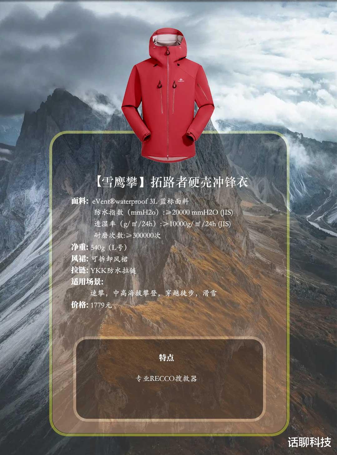 5、拓路者雪鹰攀登版硬壳冲锋衣 价格:1779元