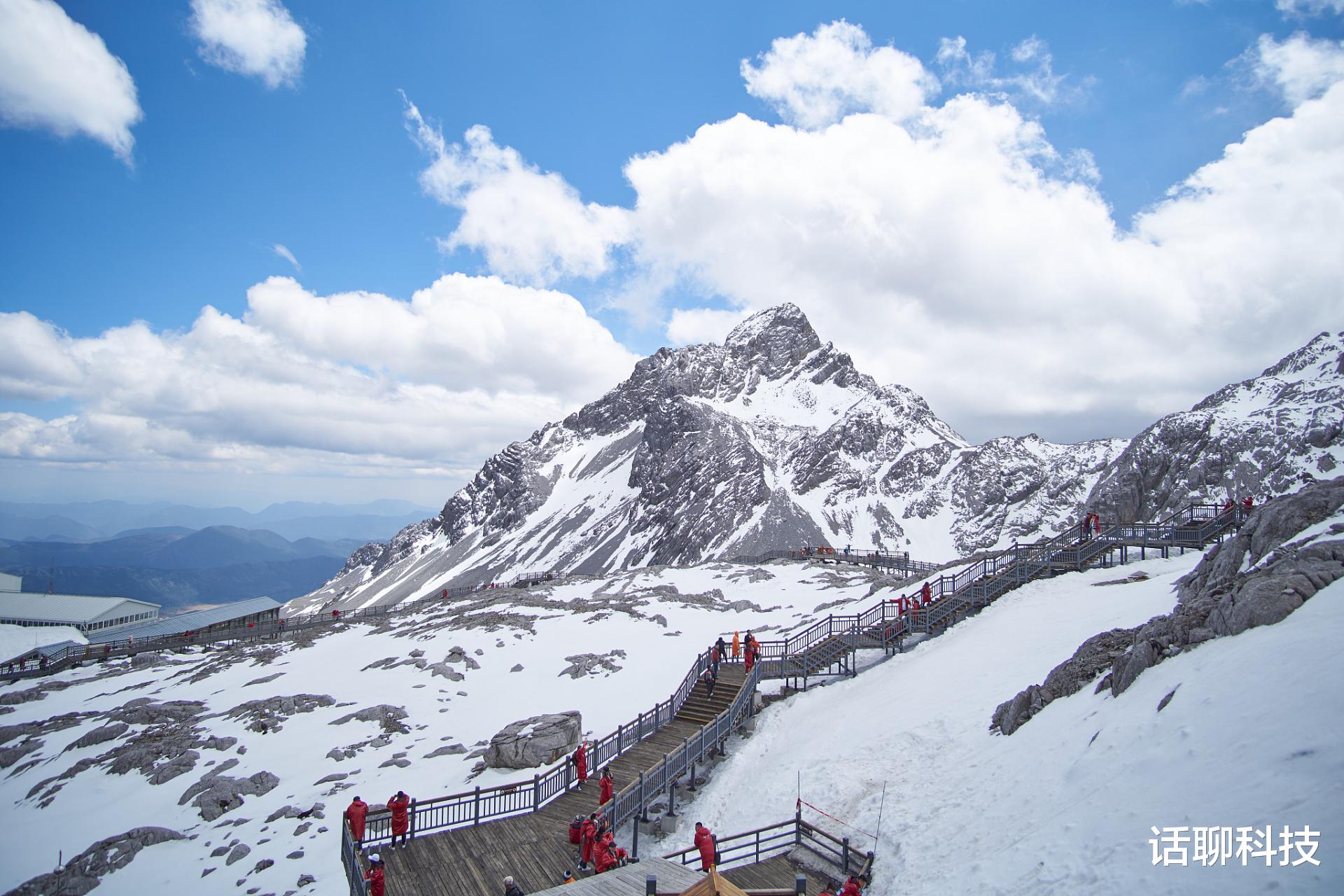一是西南地区,可以去云南丽江玉龙雪山,这是北半球最靠近赤道的雪山,主峰扇子陡海拔5596米,终年积雪。尽管夏季雪量较少,但雪线仍稳定在4000-4500米左右,乘坐索道抵达4680米的观景台,即可近距离观赏冰川遗迹和残留积雪。