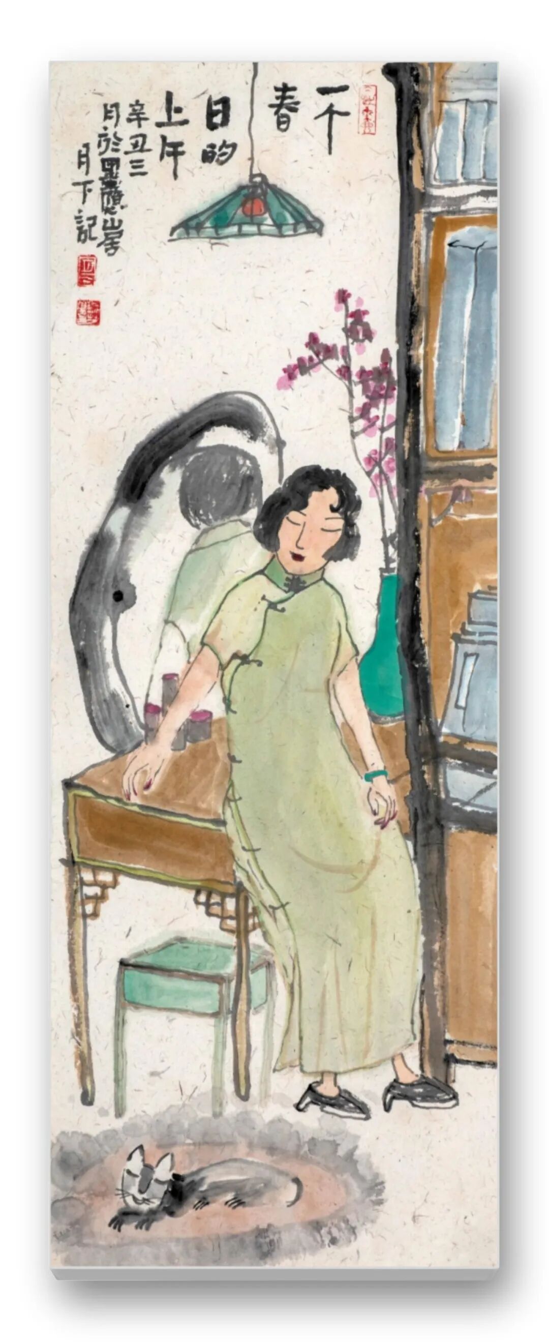 在男权思维的社会里,对待女性艺术、女性画作该不该调整一下固有的观念呢,是个问题。当女性艺术家开始用自己的视角看世界时,她们的画才与男性艺术家的画拉开距离。这种由性别带来的不同,就在于她们意识到自己是女人,因此,这一时期的女性艺术家不再是一个失声的群体,也不再是单纯沿用男人的发声方法来歌唱,她们在自我探寻中已经初步形成了自己的话语系统,这一时期的女性也不再仅仅是处于一种被说、被写、被画、被赏的客体地位,她们已经反客为主,从自身经验出发去说、去画、去写去做。月下无意挣脱女性荷尔蒙的属性,更无意与男性争短长,只愿用心体味来自身边一切人事的美好,和这世界给予的温暖,并用自己的“稚拙体式”娓娓道来。