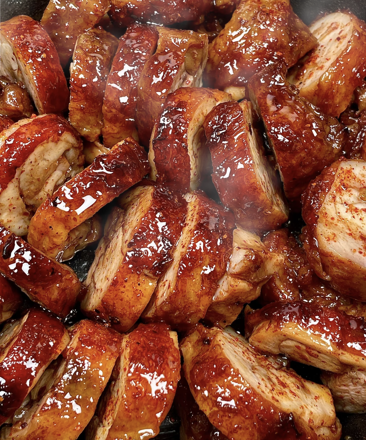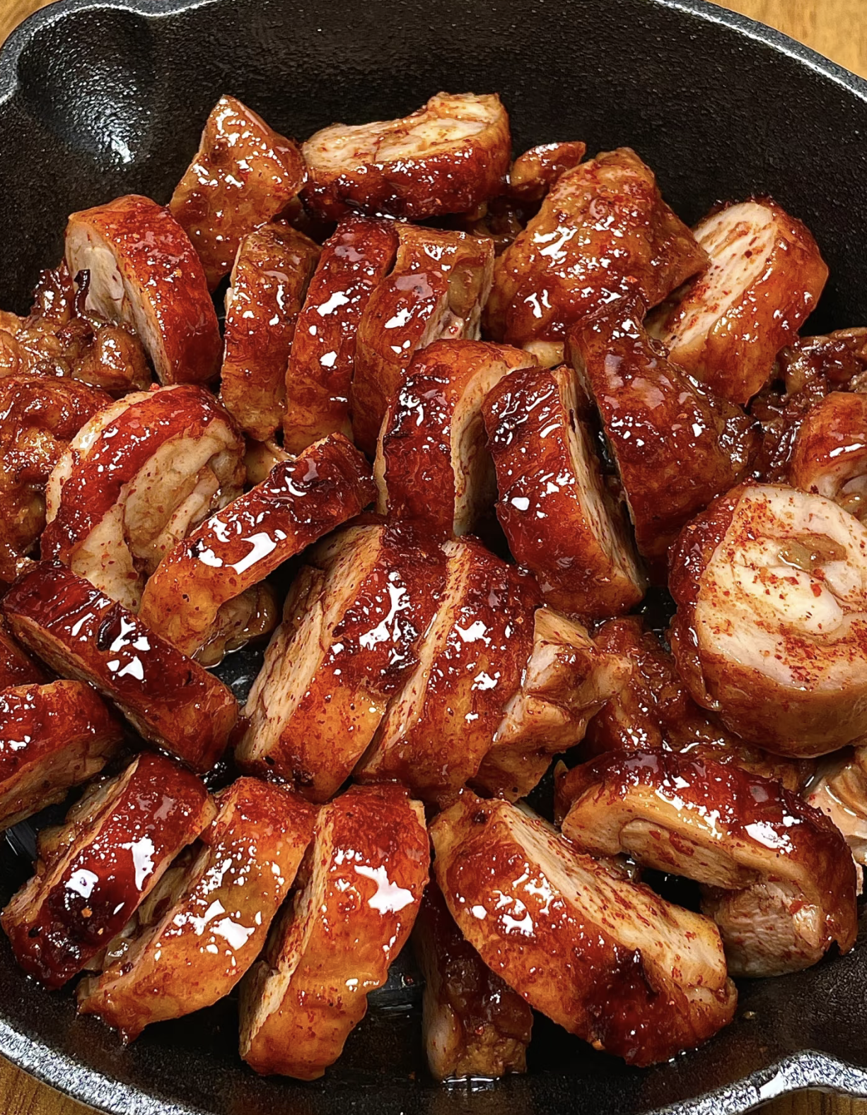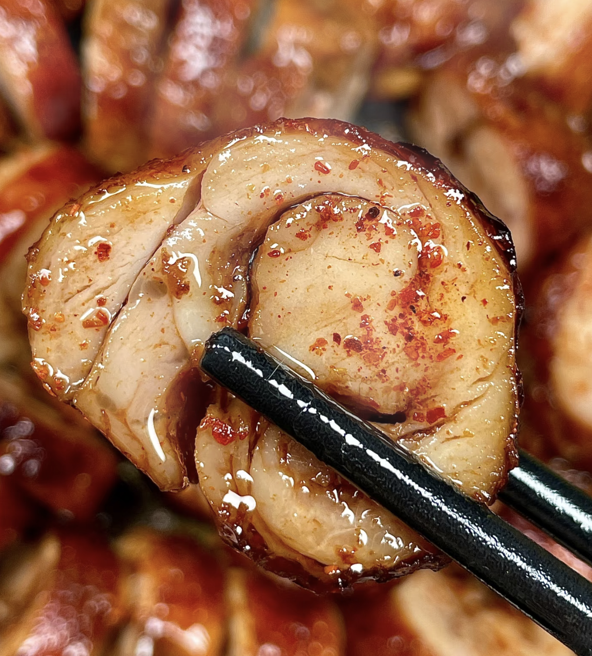 烹饪好的鸡腿卷取出来,去掉锡纸,然后在鸡肉表面刷上一层腌制酱汁。这样做可以让鸡肉表面更加入味,同时增加菜肴的光泽。将刷好酱汁的鸡腿卷再次放入空气炸锅中,设置温度为180度,烹饪时间为5分钟。这样做可以让鸡肉表面更加焦香,同时让酱汁更加浓郁。