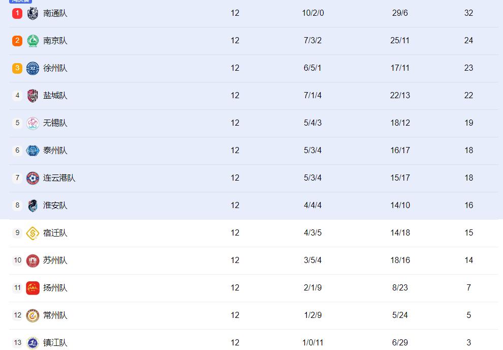 北京时间9月27日晚,苏超第13轮展开多场角逐。本轮赛事结束后,将决出晋级淘汰赛的八支球队。经过激烈争夺,苏州队以3比2险胜常州队,无锡队与南通队1比1握手言和,南京队则4比0大胜宿迁队。