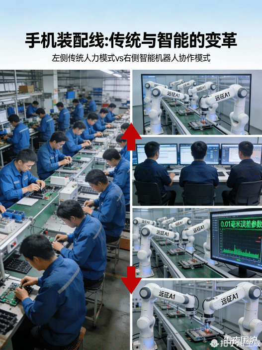 在华为深圳的手机代工厂,曾经需要30个工人轮流作业的装配线,现在只剩下5个工人——他们的工作不是拧螺丝,而是监控屏幕上的机器人状态。20台“远征A1”人形机器人负责完成所有精密装配任务:3分钟内拆装200个螺丝,误差小于0.01毫米;24小时不休,良品率从92%飙升至99.7%。每条生产线每月节省的人工费高达42万元,而生产效率提升了300%。