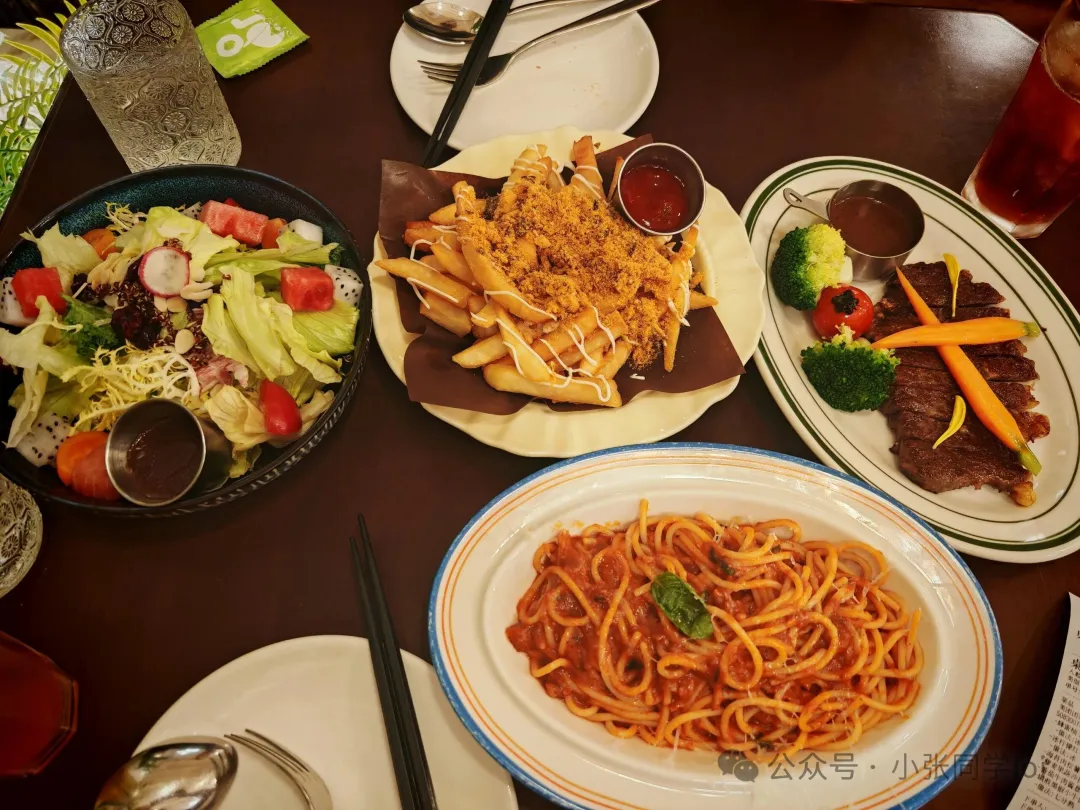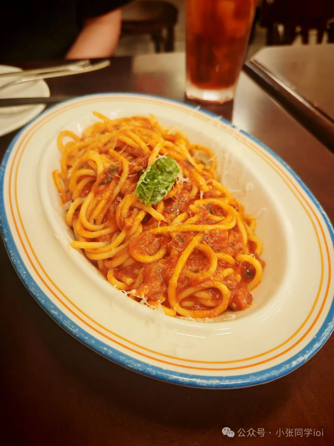 先上的番茄牛肉酱意面,一上桌就飘来浓郁番茄香。我和老婆拿起叉子,卷起裹满醇厚牛肉酱的意面,送进嘴里,番茄的酸甜混着牛肉的鲜香,意面还很劲道,我俩你一口我一口,没一会儿盘子就空了,都笑着说这意面太对味。