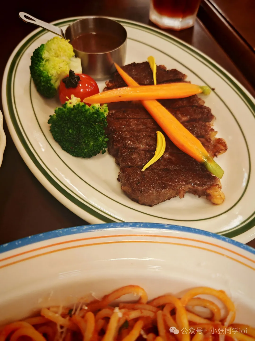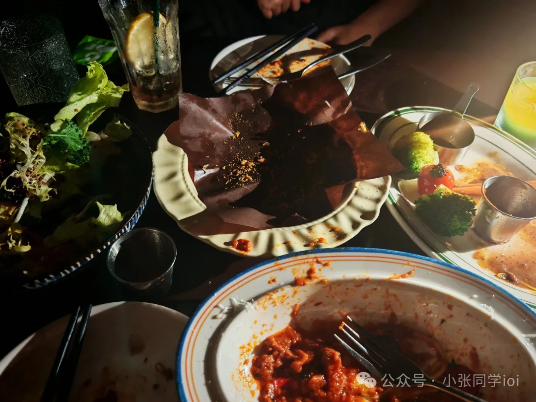 借着烛光我们接着吃牛排,虽然光线暗了,但仿佛更能专注于食物的味道和彼此的陪伴。原本普通的用餐时光,因为这场意外的停电,变成了一场特别的烛光晚餐。周围的喧嚣仿佛都褪去了,只剩下烛火、美食的温柔氛围。