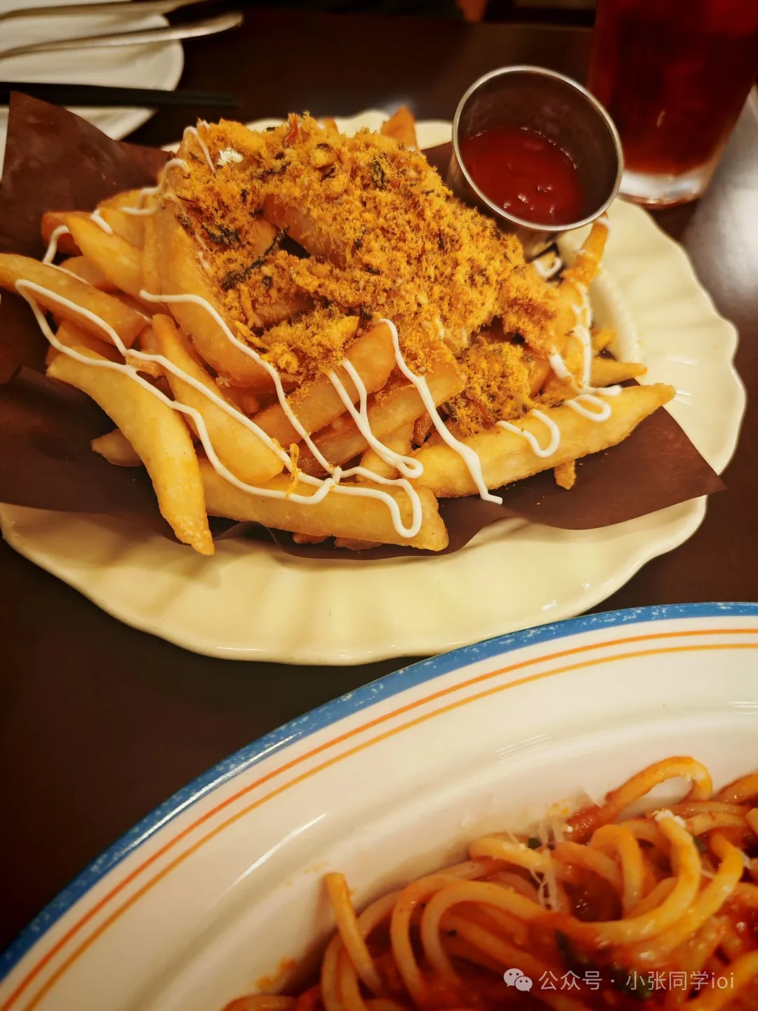 接着是小吃,海苔肉松薯条和盐酥鸡块二选一,我们选了海苔肉松薯条。海苔肉松薯条,海苔咸香、肉松绵软配上薯条酥脆,层次丰富,我和老婆抢着吃,越嚼越上瘾。