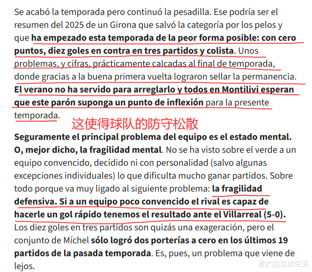 赫罗纳的新赛季依旧存在同样的问题,球队缺乏精神状态,在球场上看不到一支充满信念、决心以及个性的球队。