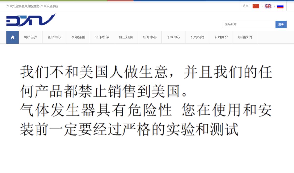美国高速公路交通安全管理局(NHTSA)目前正调查至少7件安全气囊爆裂事故,其中已有5件造成死亡。 美国监管单位怀疑,这些事故涉及来自“德天诺安全科技” 公司(Detiannuo Safety Technology,简称 DTN)的安全气囊充气机。