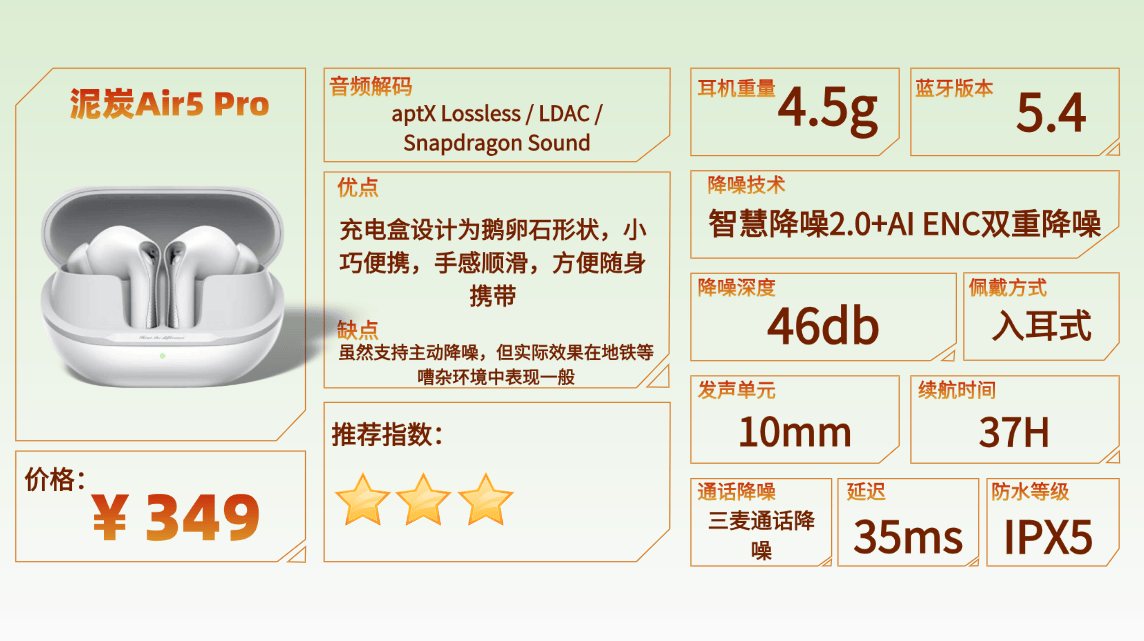 品牌6、泥 炭A ir5 Pro蓝牙耳机
