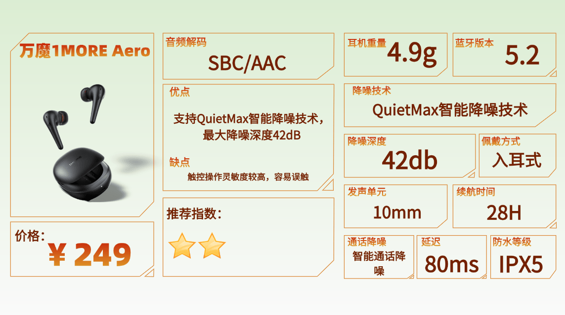 →配置数据:这款耳机在舒适度方面表现不错,单边只有4.5g,佩戴时几乎感受不到重量。对于经常通勤或者长时间办公的人来说,长时间使用也不会产生明显压迫感,整体佩戴体验轻盈自然。