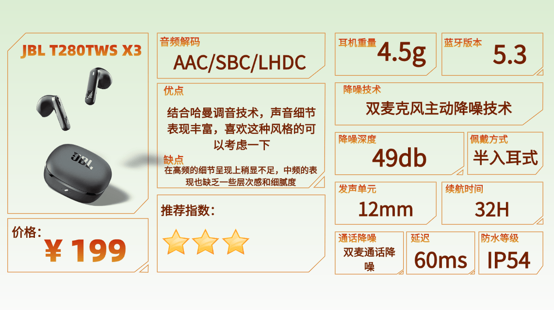 品牌4、J BL T 280TWS X3蓝牙耳机