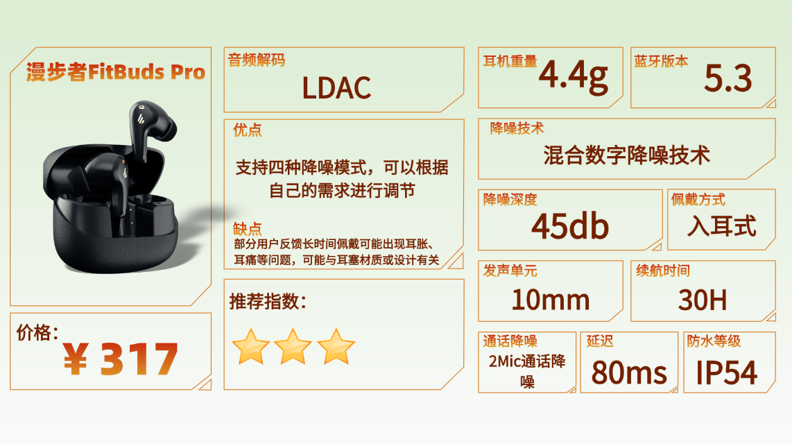 品牌3、漫 步者F itBuds Pro蓝牙耳机