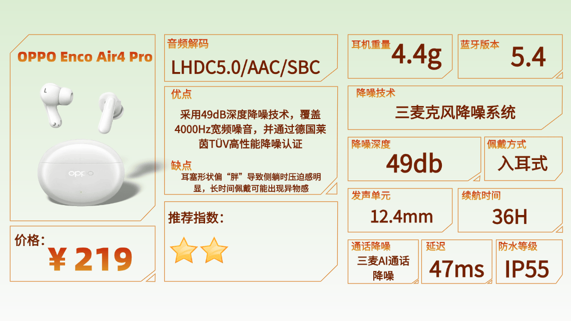 品牌7、O PPO E nco Air4 Pro蓝牙耳机