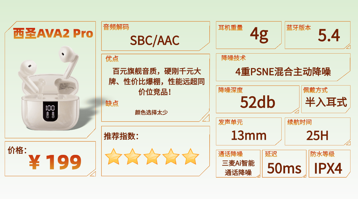 品牌1、西圣AVA2 Pro蓝牙耳机