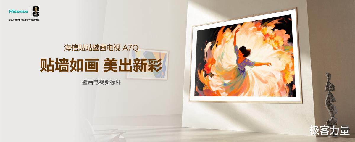除了发布RGB-Mini LED新品U7S Pro,海信还在现场展示了主张“生活美学”的贴贴壁画电视A7Q,2.99cm超薄机身如壁画般融入家居,磁吸画框随心更换,内置海量艺术内容,打造“会呼吸的墙”。