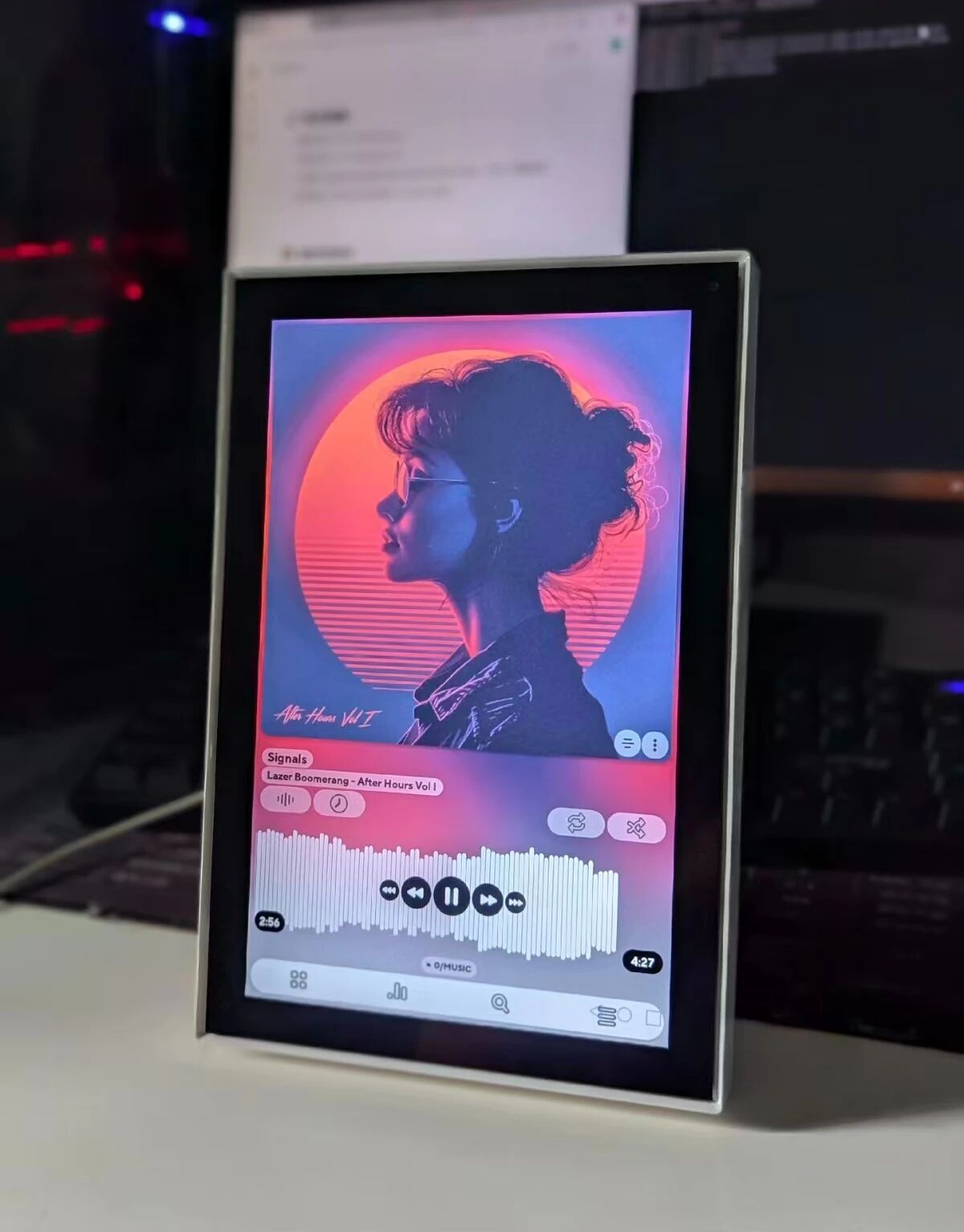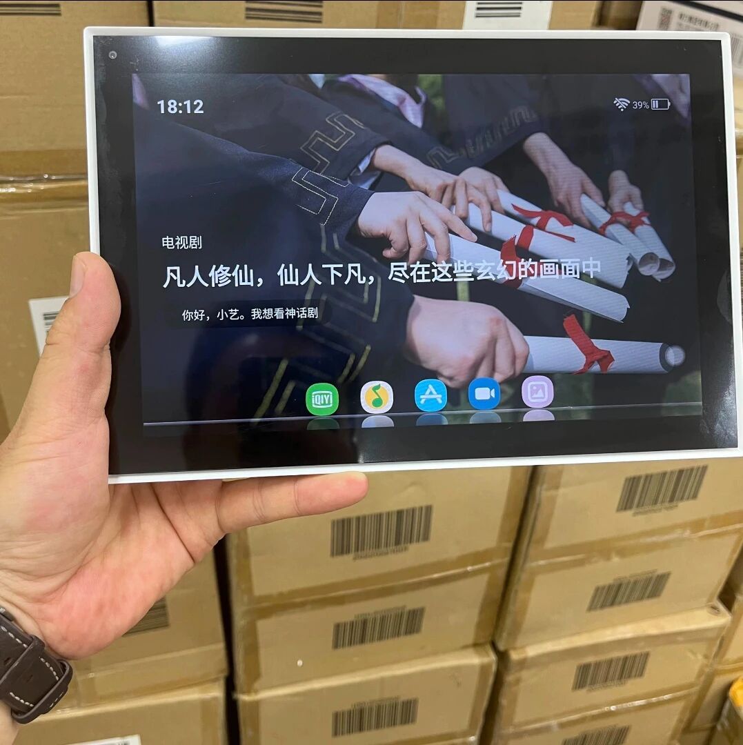 这个安卓设备名叫小智画屏,大概是2020年发布的智慧屏产品,内置小艺语音,但又不是华为出的。它外观上就与众不同,黑色屏框外加白色中框,看起来与数码相框一模一样,四角方方正正。