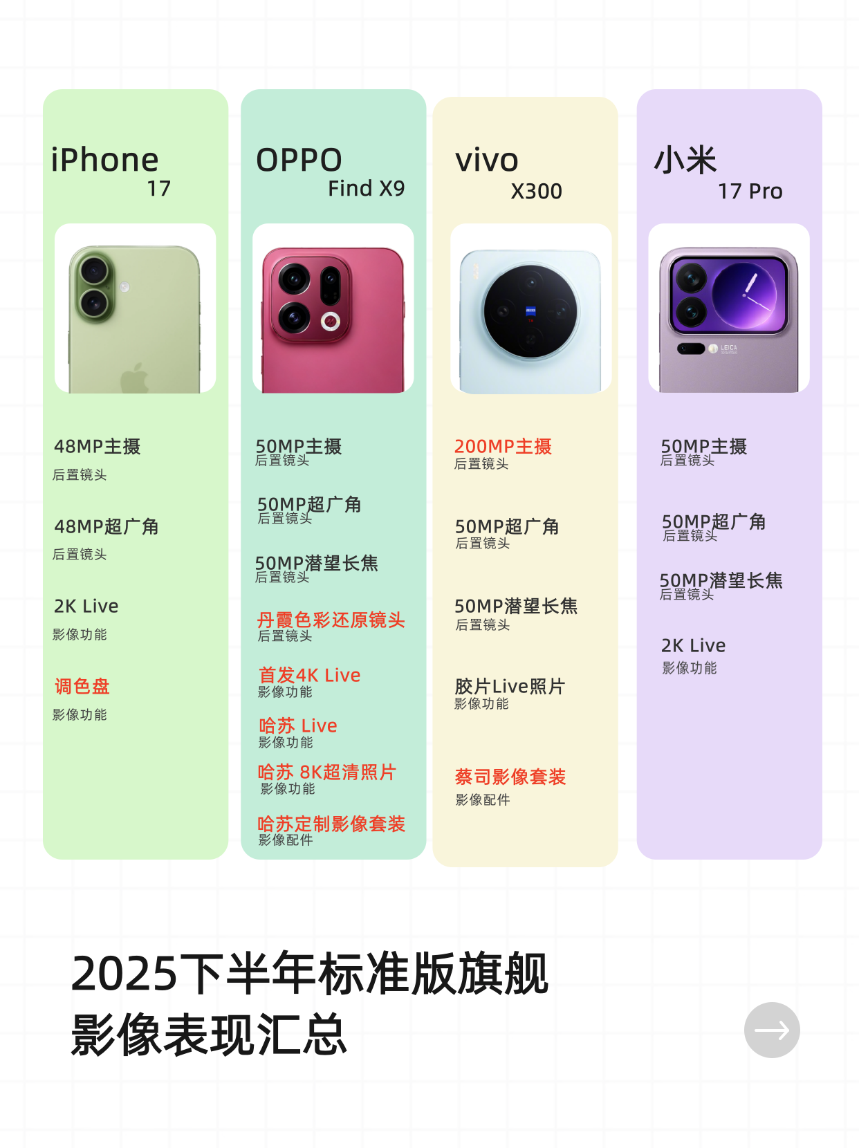 今年十月绝对是今年下半年国产手机圈最好看的一集,感觉手机厂商们已经卷没边了,这一对比感觉iPhone 17都差点意思了。