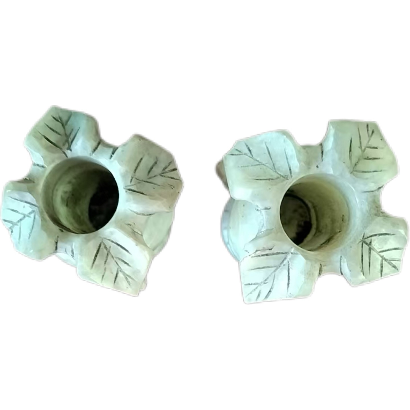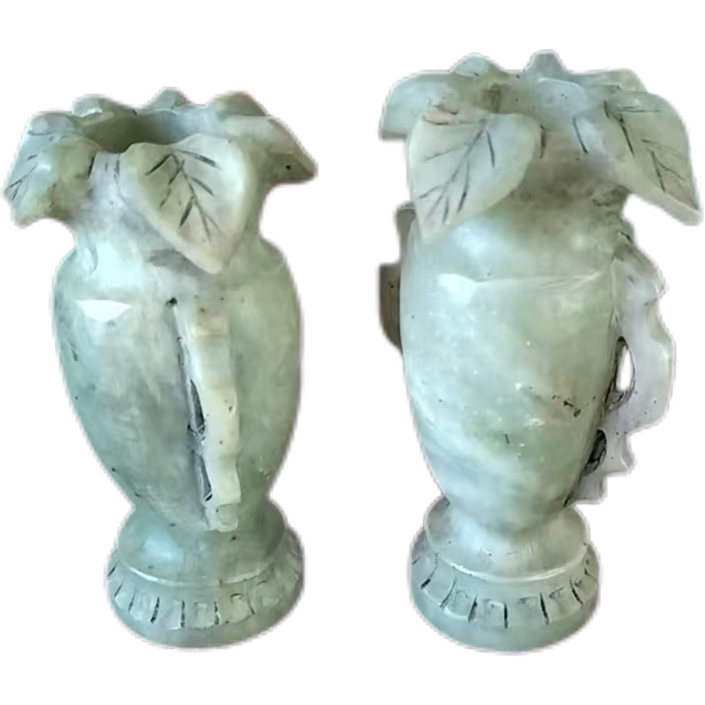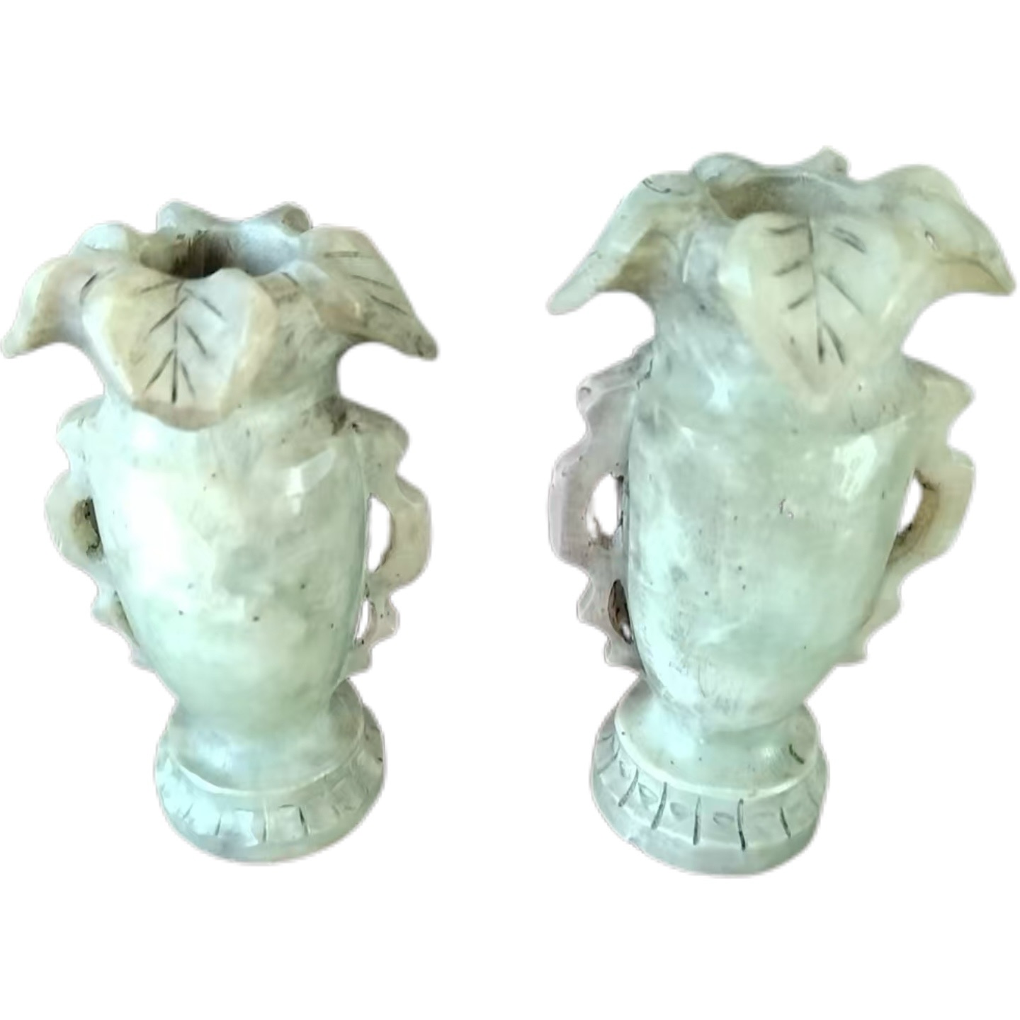 这对花口对瓶的工艺水准堪称精湛。花口部分,雕琢成花瓣形态,线条流畅自然,花瓣边缘圆润光滑,纹理清晰,将花卉的柔美与灵动展现得淋漓尽致,仿佛真有鲜花在瓶口悄然绽放。瓶身的雕刻同样细致入微,可能存在的辅助纹饰(如缠枝纹等),刻画得一丝不苟,线条细腻,层次分明。