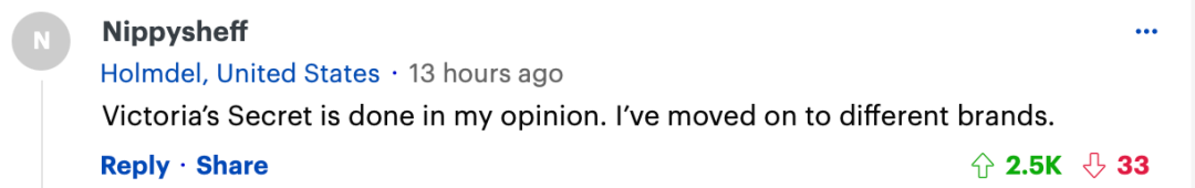 “在我看来,维多利亚的秘密已经完蛋了。我转而选择其他品牌。”