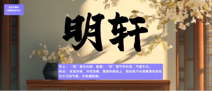 字义: “明”意为光明、聪慧;“轩”指气宇轩昂、气度不凡。