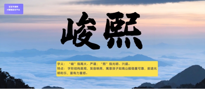 特点: 字形结构美观,发音响亮,寓意孩子如高山般稳重可靠,前途光明和乐,富有力量感。