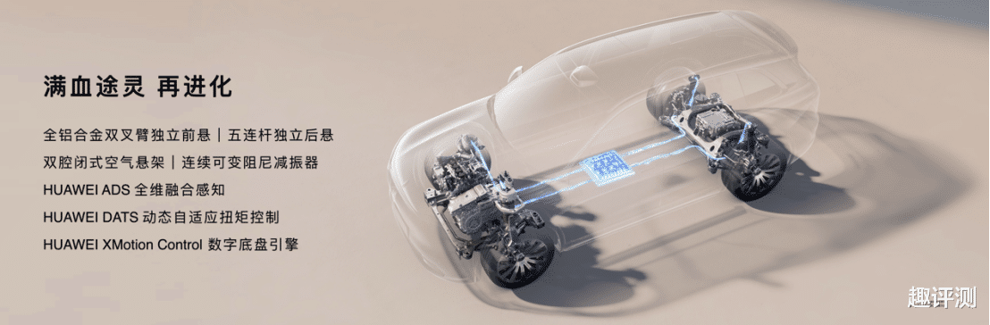 全新问界M7搭载华为途灵平台,集成HUAWEI ADS全维融合感知、HUAWEIDATS动态自适应扭矩控制与HUAWEIXMotion Control数字底盘引擎等核心技术。全系标配全铝合金双叉臂前悬与五连杆独立后悬,冲击感降低33%,舒适性提升19%,操控稳定与舒适性同步进阶。全新升级双腔闭式空气悬架,支持5档高度调节,调节范围80mm,调节速率提升30%,可实时识别路况自适应平衡车身高度。动扭矩分配控制防打滑,打滑风险降低61%。动态扭矩调节防颠簸,减振器阻尼调节100次/秒,过路障冲击感降低40%,舒适性提升18%。