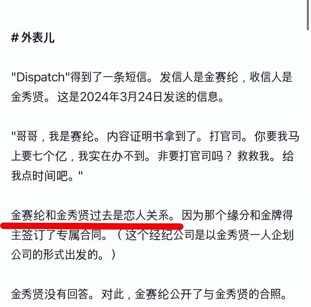 这逻辑不通啊,如果是走形式,那为什么金秀贤收到金赛纶短信后不回,还直接转发给记者,并把金赛纶手机号曝光了。