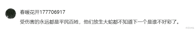 看看网友怎么说!受伤害的永远都是平民百姓,他们放生大蛇都不知道下一个是谁不好彩了。