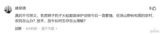 真的不可思议,老虎狮子豹子大蛇都是保护动物今后一直繁殖,在深山野岭包围的农村,农民怎么办?放羊,放牛如何生存怎么理解?