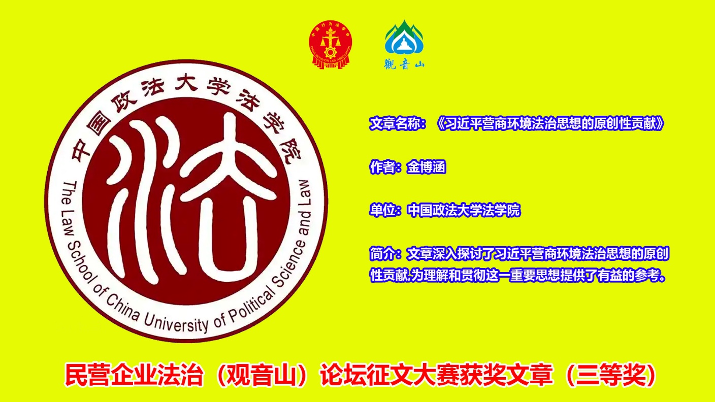 为深入贯彻全面依法治国的基本方略,积极响应国家关于优化营商环境的号召,中国行为法学会联合广东观音山国家森林公园,成功举办了关于民营企业法治(观音山)论坛征文大赛。本次大赛以“民营企业营商环境的法治化探索与实践”为主题,旨在通过广泛征集高质量的研究成果与实践经验,共同推动民营企业营商环境的法治化建设。
