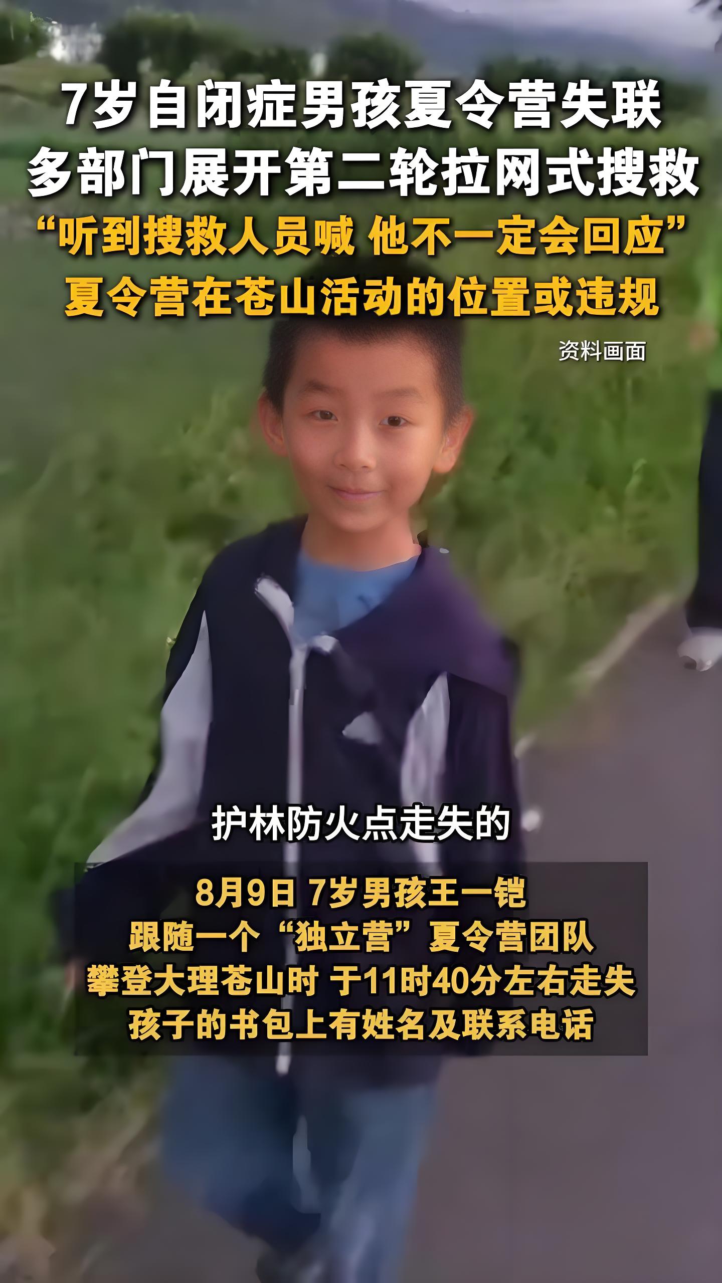 8 月 9 日,这本应是一个普通的夏日,云南大理苍山却被紧张与焦虑所笼罩。当天,7 岁的自闭症男孩王一铠参加 “明日之光夏令营” 的户外 “独立营” 活动。谁能想到,这场本是锻炼与成长的旅程,却在上午 11 时 40 分左右,骤然演变成一场惊心动魄的失踪危机。