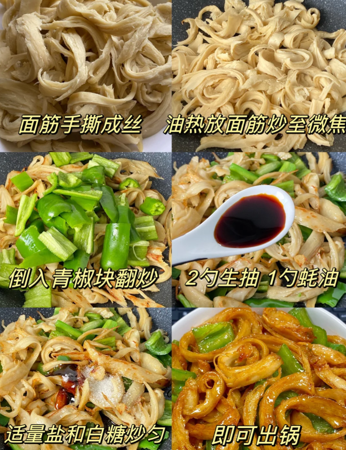 现在这道青椒炒面筋已经成了我家的保留菜目。周末家人围坐,一盘青椒炒面筋配白米饭,大家抢着用汤汁拌饭,连盘子都要刮得干干净净。看着家人满足的表情,我突然明白:所谓美食,不一定要山珍海味,能把平凡食材变成幸福滋味,才是厨房里最珍贵的魔法。下次当有人问你“今晚吃啥”,不妨试试这道充满烟火气的青椒炒面筋吧!