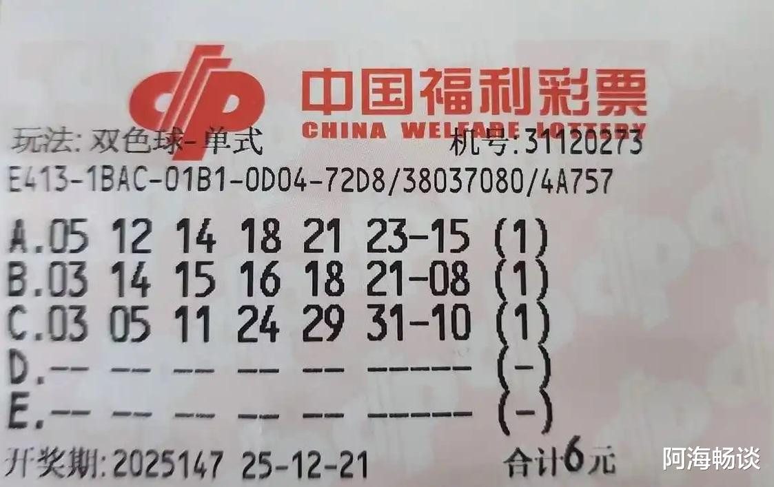 大家好,今天是12月21日,农历十一月初二,星期日。今晚即将迎来第25147期双色球的开奖。回顾上期开奖号码:前区为5、7、12、24、26、28,龙头为5,凤尾28,跨度达到23。上期重号开出12,其中24和26构成一组相邻号。前区三区比呈现2:1:3,奇偶比为2:4。后区开出号码2,距离上次开出间隔31期,这个2你猜中了吗?目前,小编已经收集到不少25147期的票面,接下来与大家一同分享。在欣赏之余,也温馨提醒各位,请理性对待,量力而行。