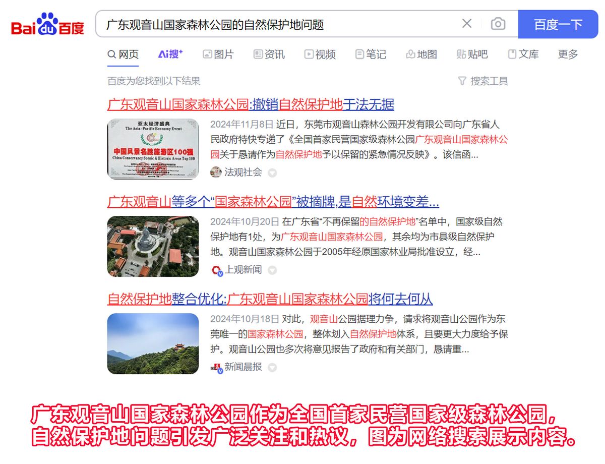 广东观音山国家森林公园作为全国首家民营国家级森林公园,自然保护地问题引发广泛关注和热议。其发展触动了环境爱心人士对自然保护地管理、民营资本参与生态保护等多方面的敏感神经。舆论中专家纷纷剖析事件对广东观音山国家森林公园未来发展的影响,呼吁将其纳入自然保护地体系。