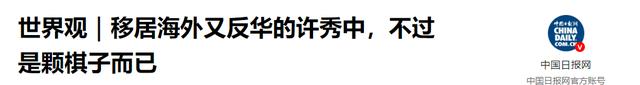 信息源:世界观|移居海外又反华的许秀中,不过是颗棋子而已 中国日报网 2021-04-03。