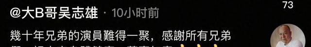 6月3号晚,“大B哥”吴志雄分享了一段于香港聚会的画面,并在留言处感慨:几十年兄弟的演员难得一聚,感谢所有兄弟们。