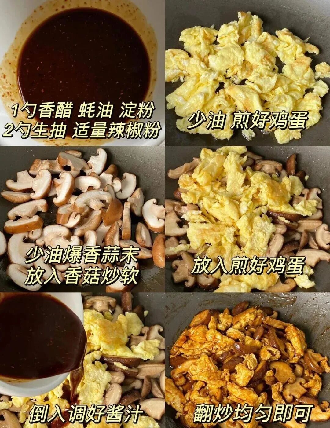 香菇、鸡蛋、蒜、生抽、香醋、蚝油、淀粉、辣椒粉、食用油