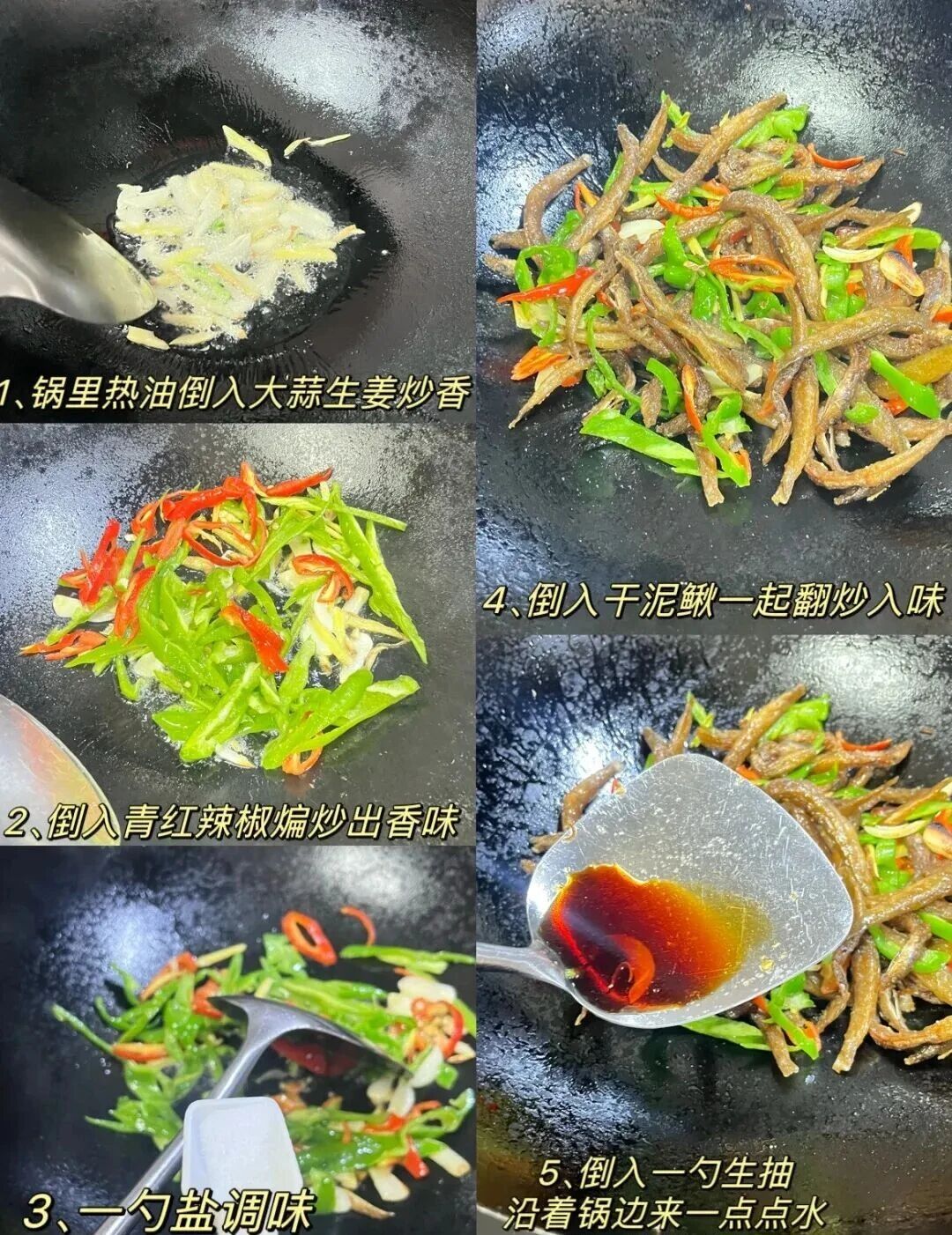 泥鳅干、青红辣椒、大蒜、生姜、生抽、食用油