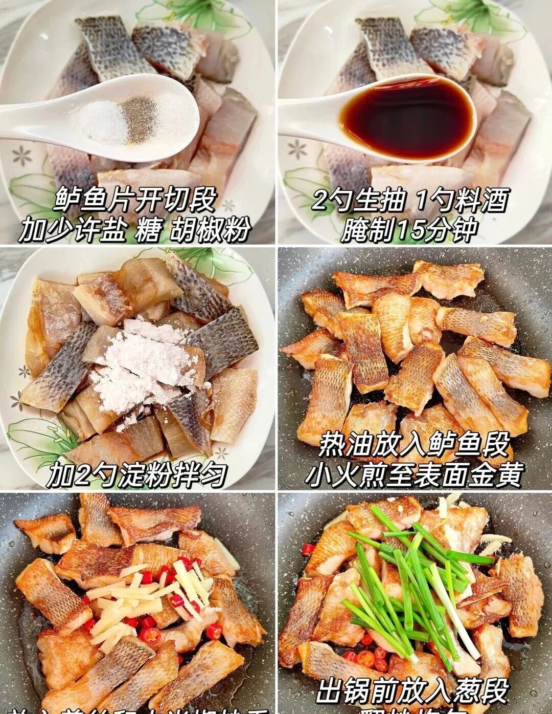 1. 鲈鱼切段,加少许盐、糖、胡椒粉、2勺生抽、1勺料酒腌15分钟,裹淀粉。