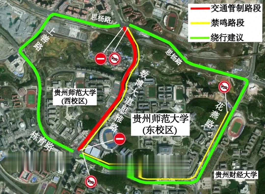 贵州省2026年普通高等学校艺术类考试将于2025年12月9日至12月14日在贵州师范大学东区进行。为给考生营造良好的考试环境,因期间考场周围环境要求,根据《中华人民共和国道路交通安全法》第39条之规定,决定对贵安新区大学城数博大道思雅路部分路段临时交通管制,现通告如下: